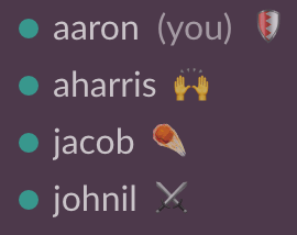 Second, if you use Slack, have your team explicitly set their status-emoji to their current role: 🛡️, ⚔️️, or 🙌. Actively work to reinforce the social norms of how this system works. The outside world goes through the Tank when it needs something. The Damage Dealers are left entirely alone to focus, seeking others only when they themselves need aid. Healers keep the system greased, dealing with urgent and incremental forms of work, and helping un-stick Damage Dealers in times of need.